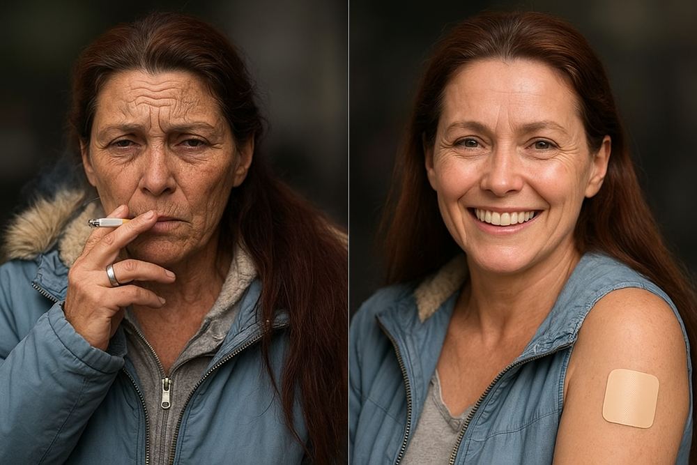 - Retira el adhesivo del parche y colócalo sobre la piel.